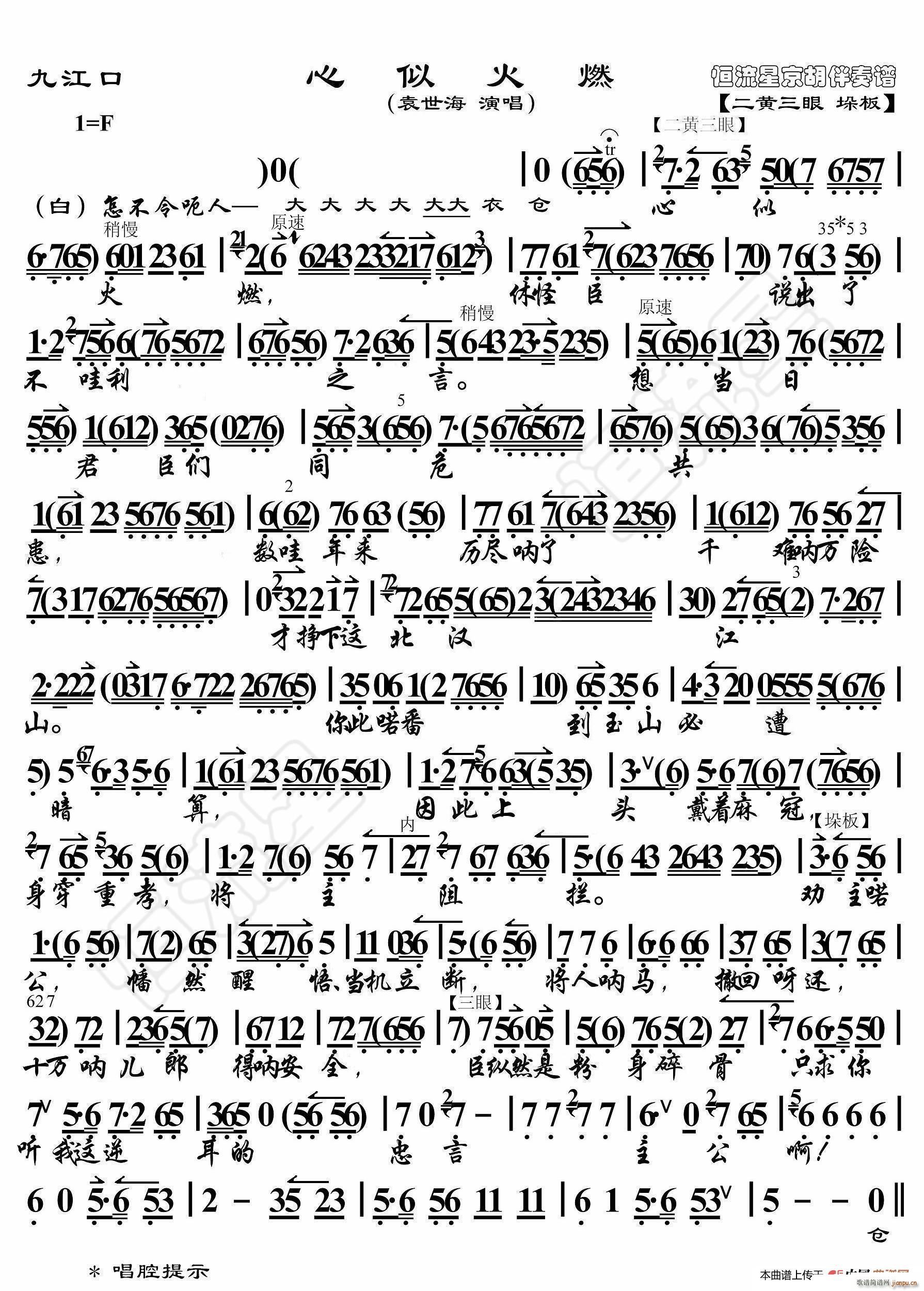 [十字及以上]九江口 心似火燃(京胡伴奏谱) 袁世海