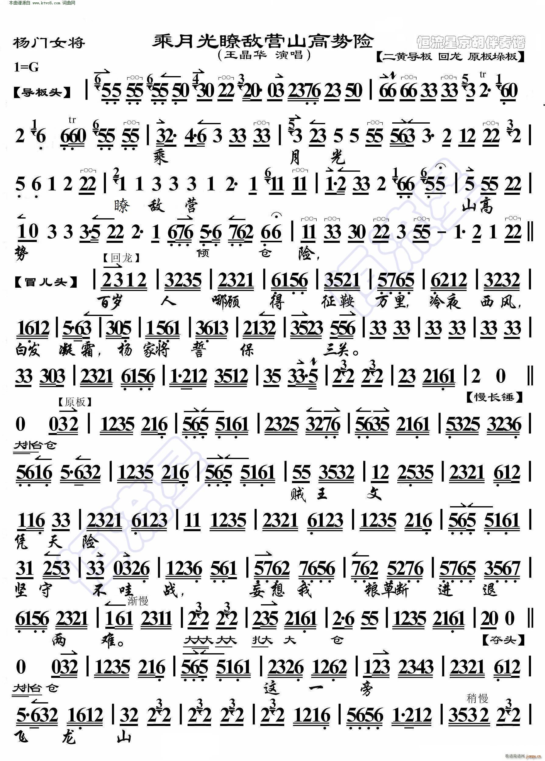 [京剧曲谱]杨门女将 乘月光瞭敌营山高势险( 京胡伴奏谱 ) 王晶华