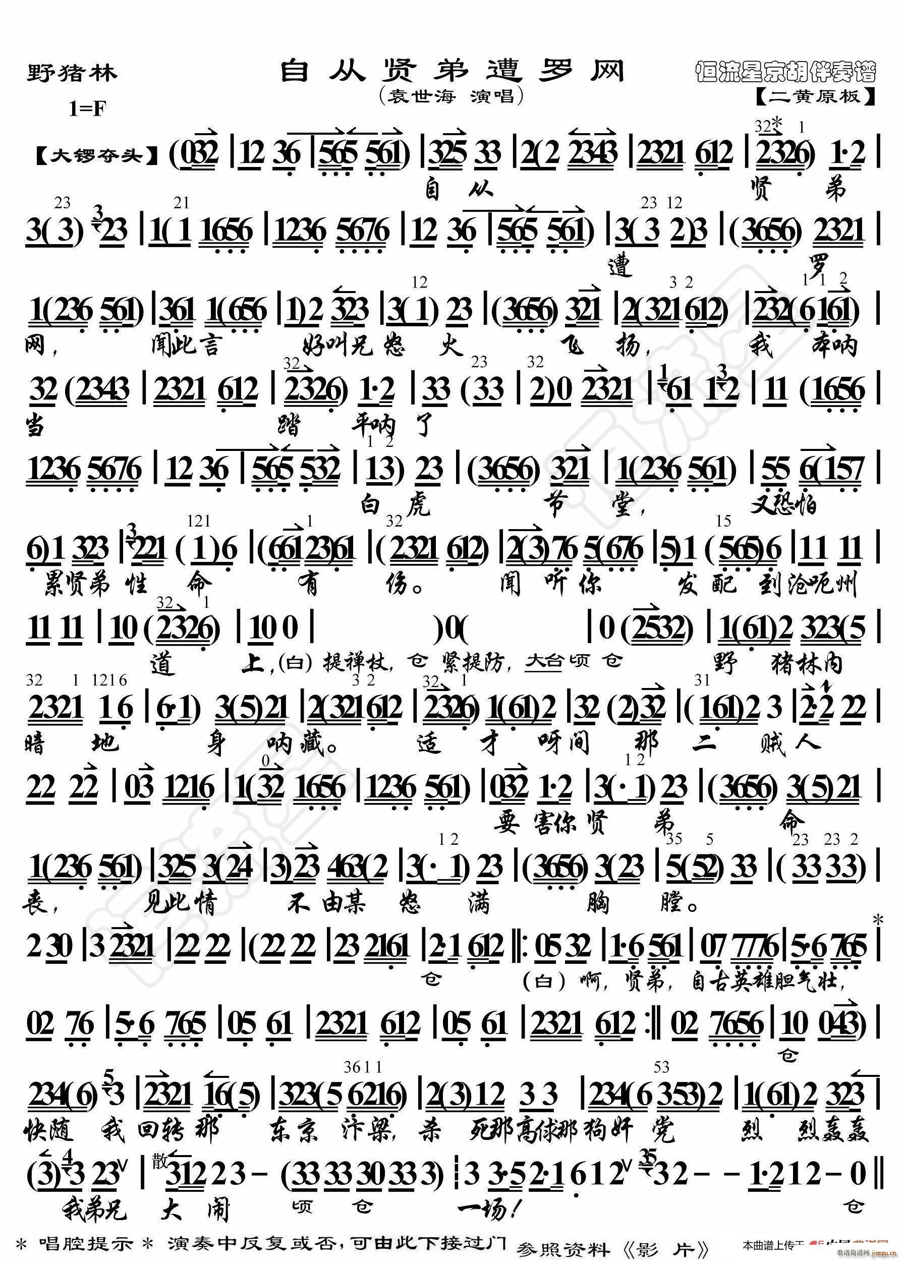 [十字及以上]野猪林 自从贤弟遭罗网(京胡伴奏谱) 袁世海