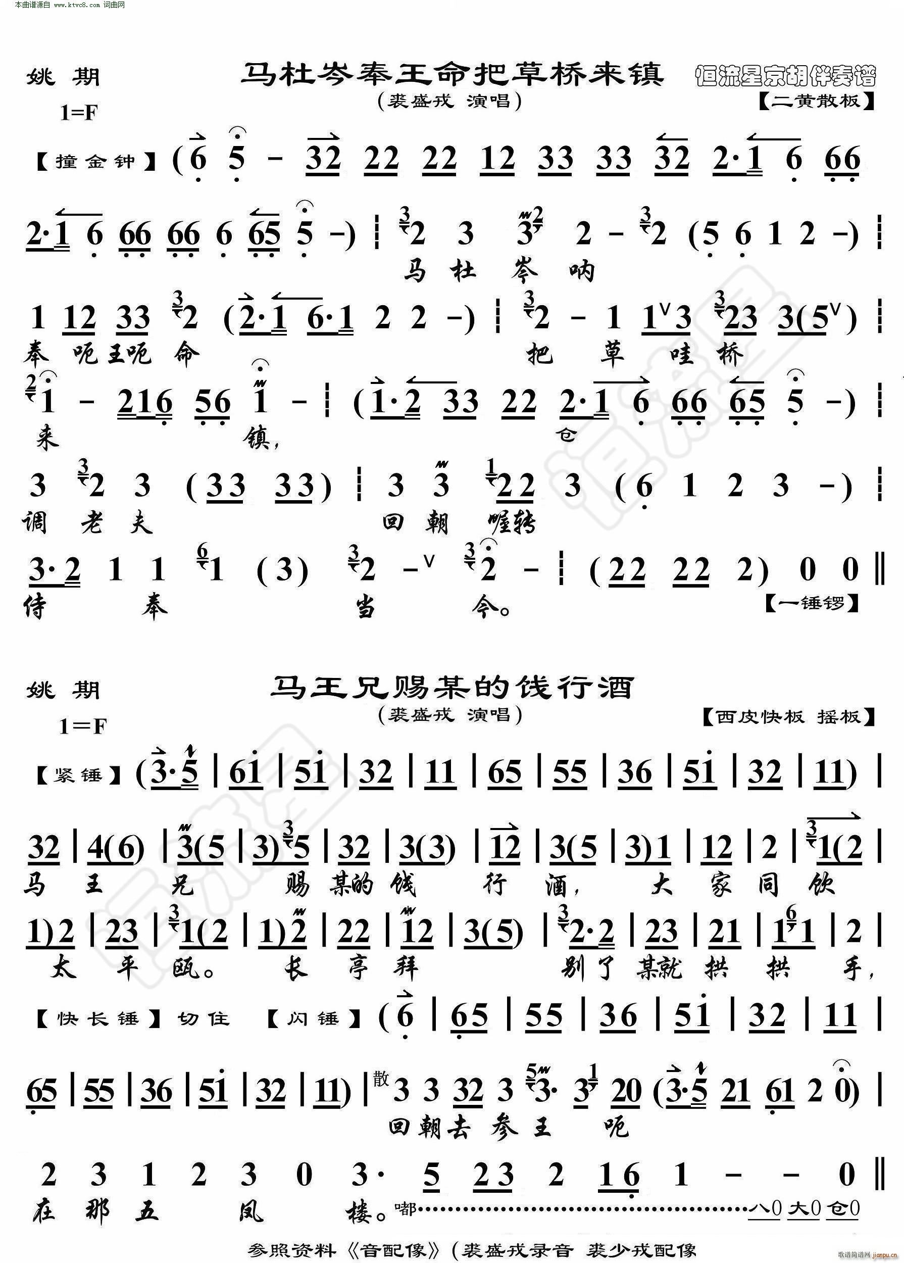 [京剧曲谱]姚期 马杜岑奉王命把草桥来镇 马王兄赐某的饯行酒( 京胡伴奏谱 ) 裘盛戎