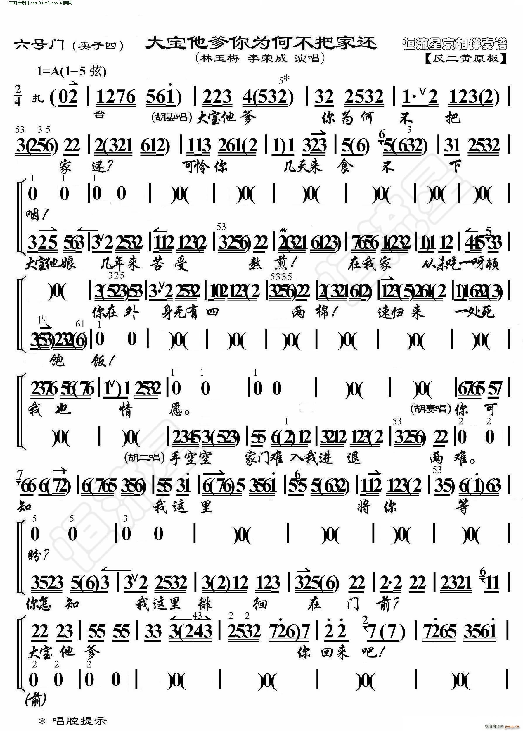 [京剧曲谱]六号门 大宝他爹你为何不把家还( 京胡伴奏谱 ) 林玉梅