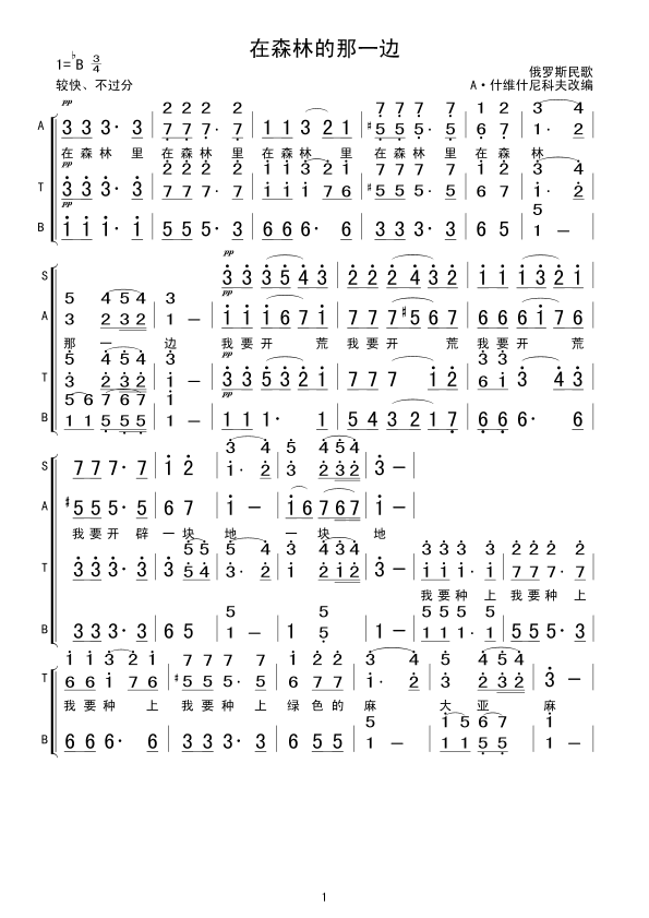 [六字歌谱]在森林和原野(芬兰民歌) 芬兰民歌