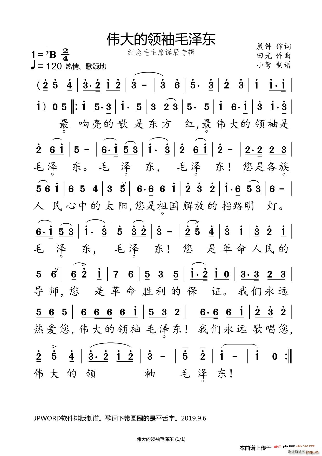 当前位置: 歌谱简谱网 > 十字及以上 > 伟大的领袖毛泽东(纪念毛主席诞辰专辑)