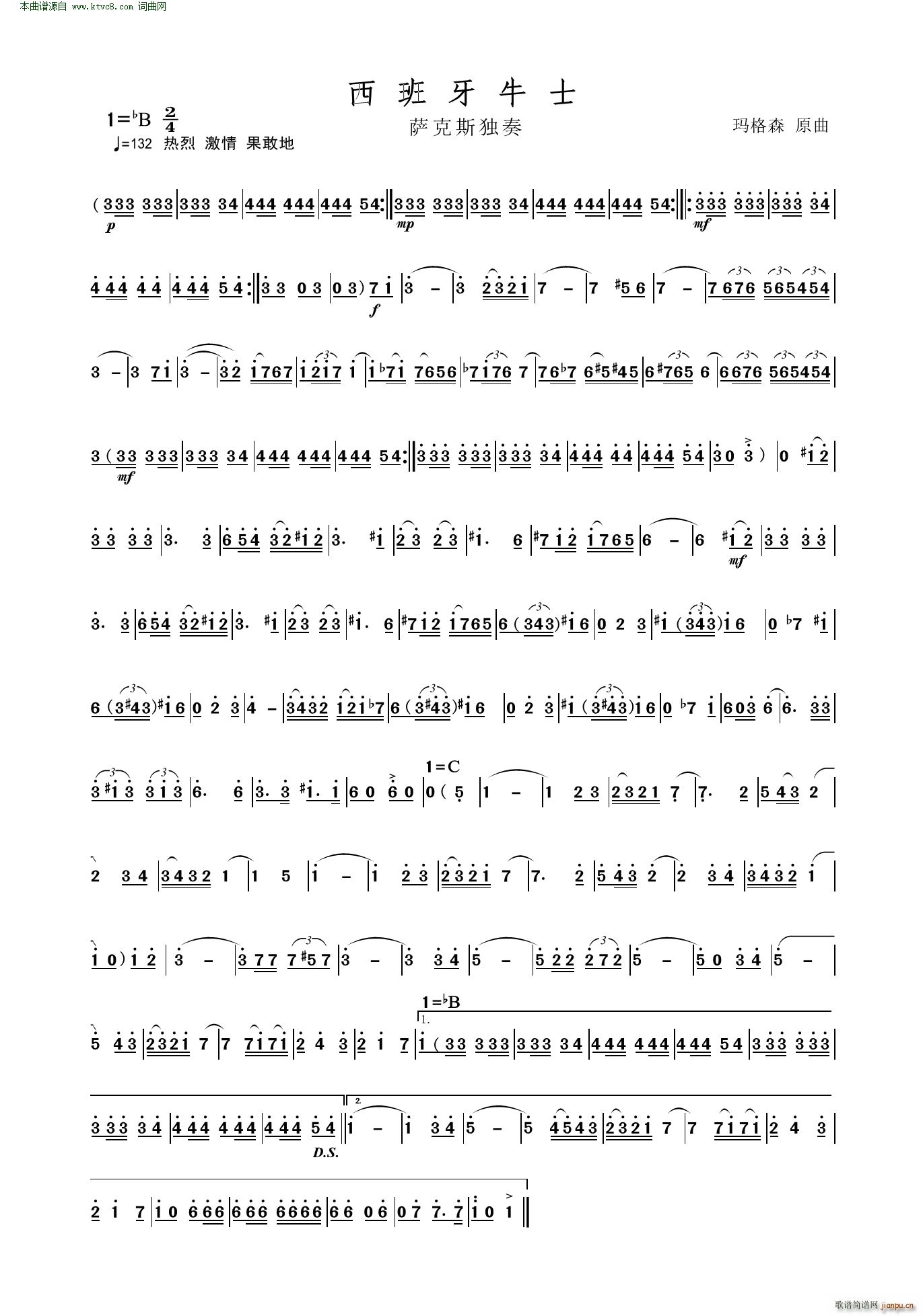 [十字及以上]西班牙牛士(萨克斯独奏)