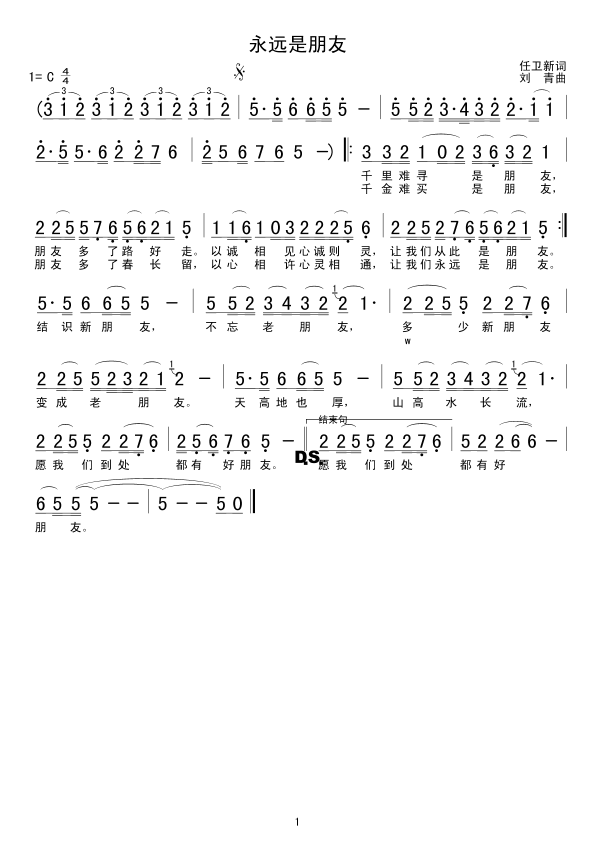 [五字歌谱]永远是朋友[彩谱] 宋祖英