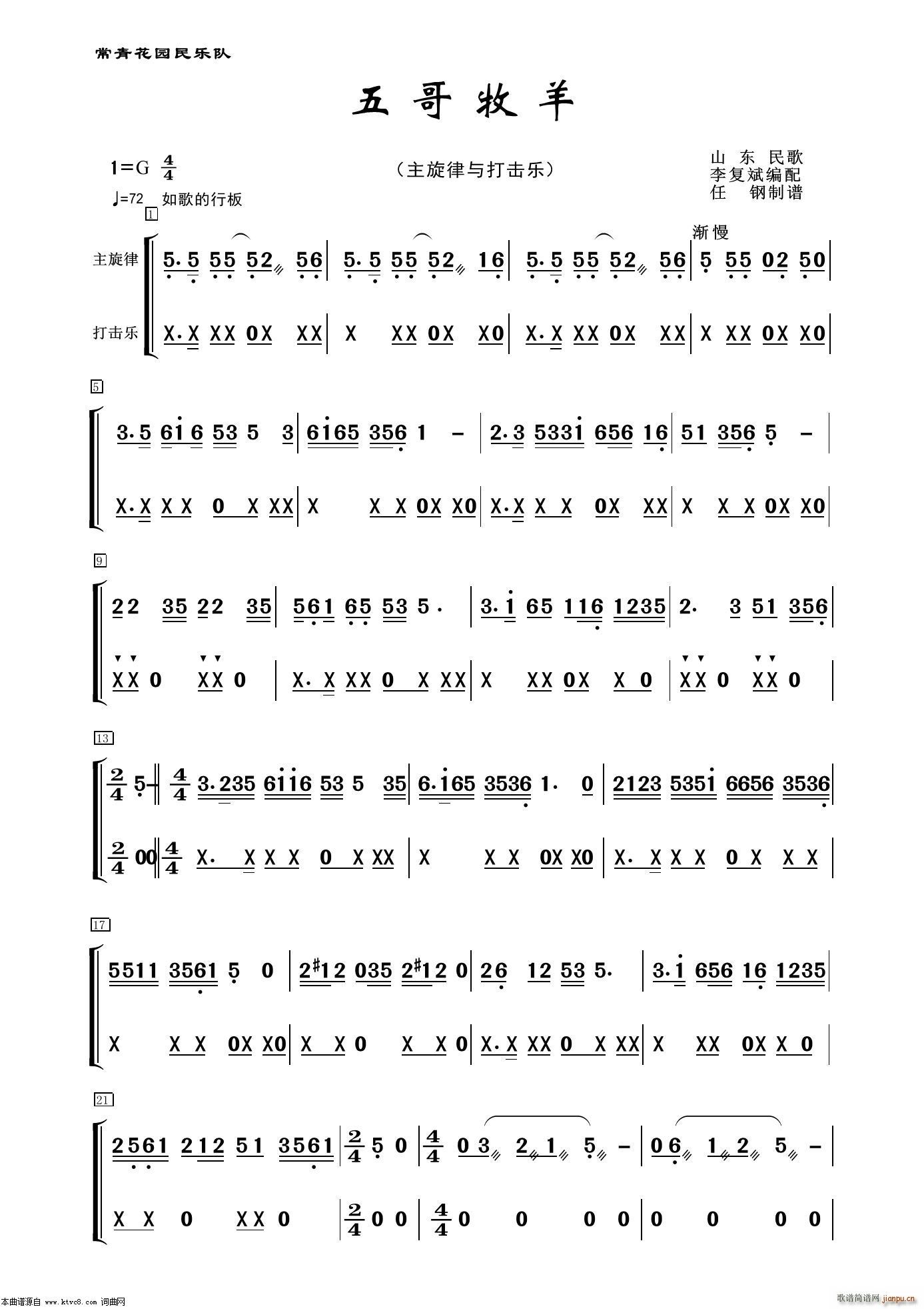 [十字及以上]五哥牧羊-打击乐(器乐曲)