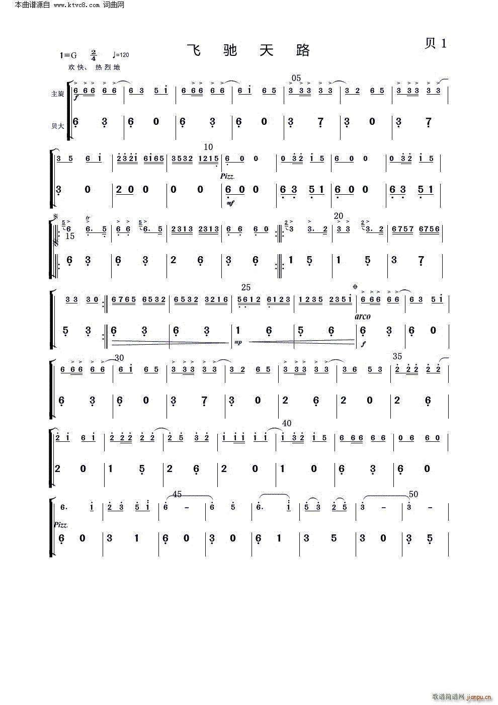 [七字歌谱]飞驰天路(中阮分谱)