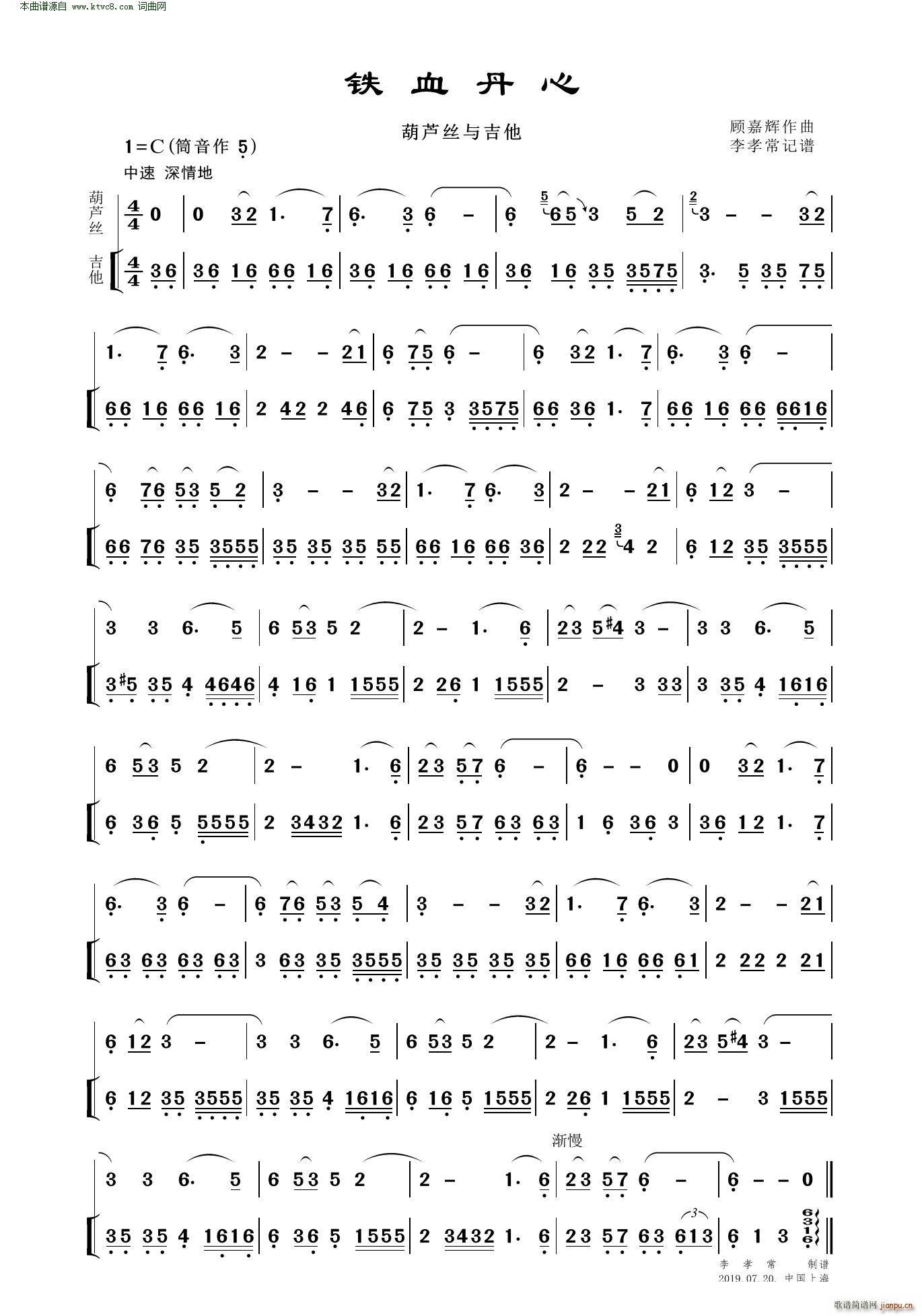 [总谱]铁血丹心(葫芦丝 二胡曲)
