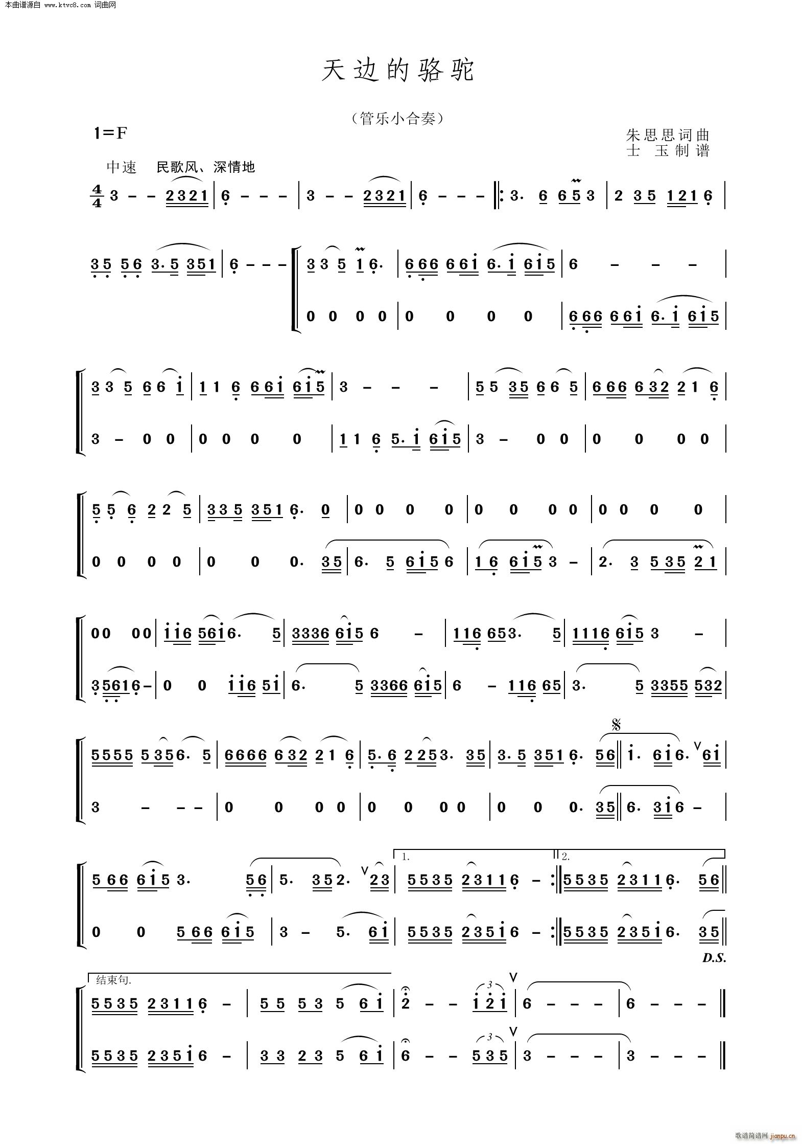 [五字歌谱]天边的骆驼 蒋大为演唱 女声伴唱 朱思思词曲