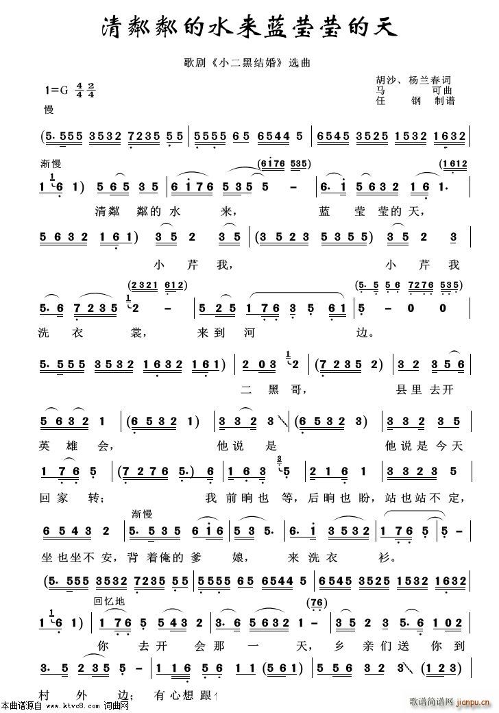 [十字及以上]清粼粼的水来蓝莹莹的天(歌剧《小二黑结婚》选曲)