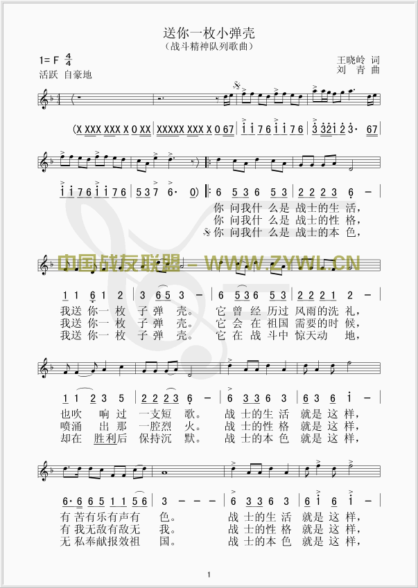 [七字歌谱]送你一枚小弹壳(五线谱/简谱对照)