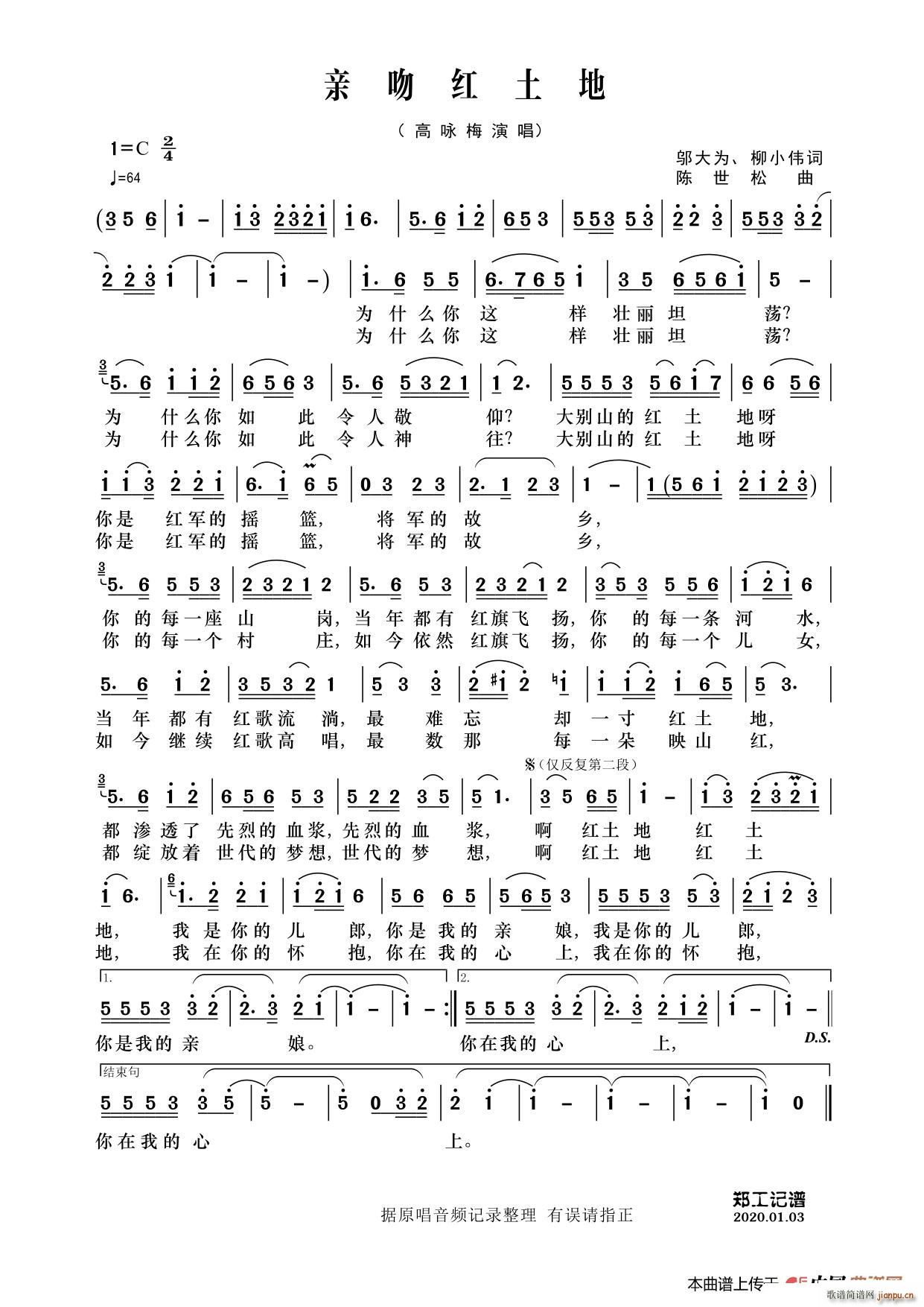 当前位置: 歌谱简谱网 > 五字歌谱 > 亲吻红土地