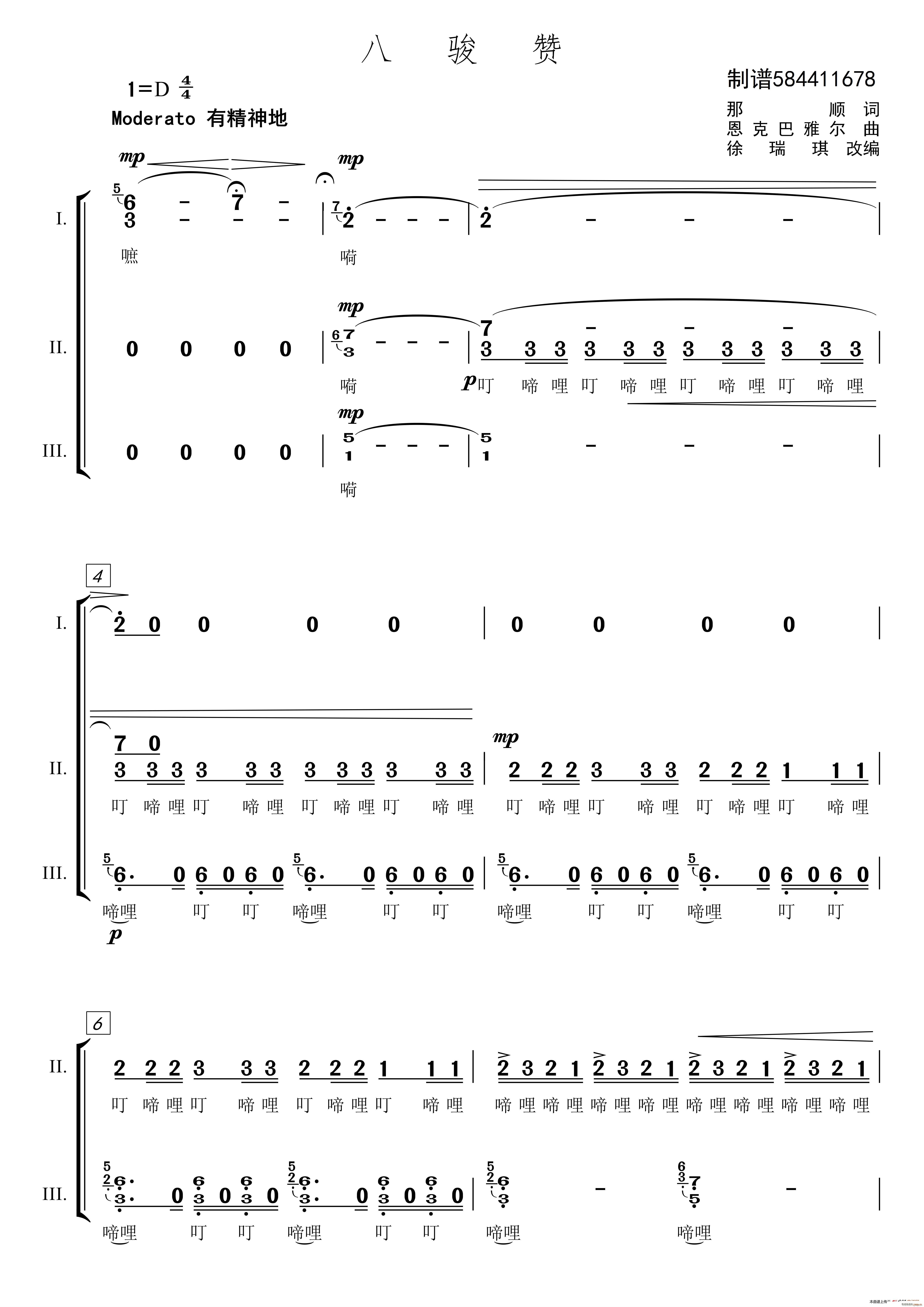 [三字歌谱]八骏赞(混声无伴奏合唱)(简谱) 中国交响乐团少年及女子合唱团