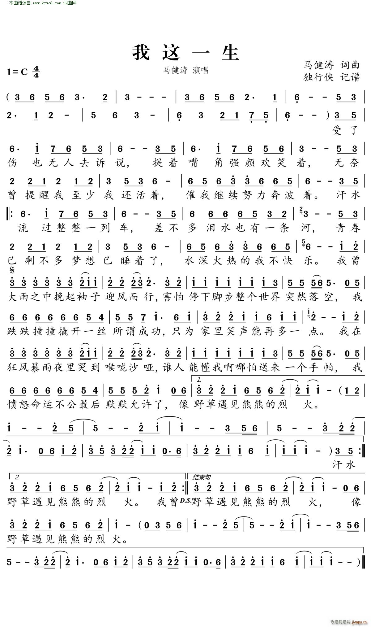[三字歌谱]我一生(1) 未知