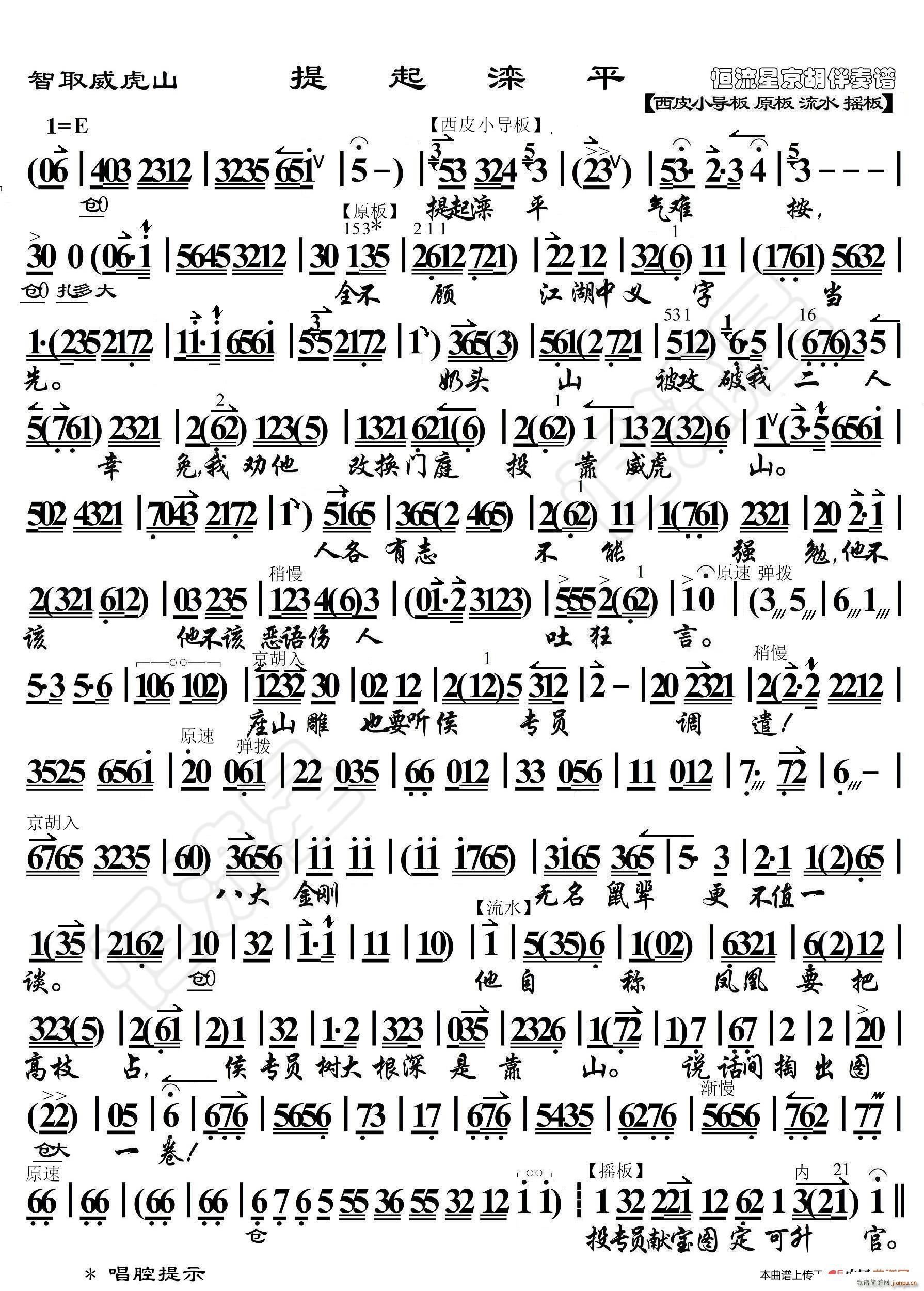 [十字及以上]智取威虎山 提起滦平(京胡伴奏谱) 童祥苓
