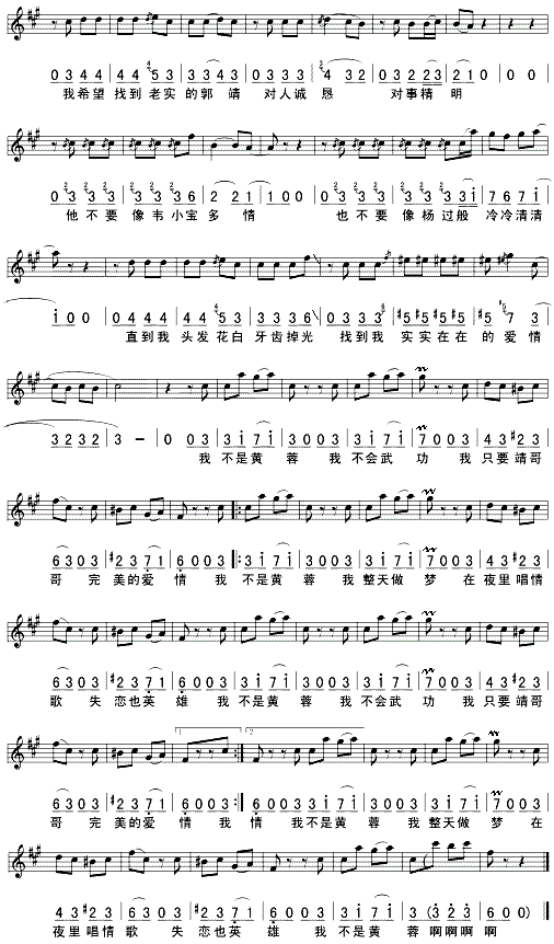 [五字歌谱]我不是黄蓉(五线谱/简谱对照)