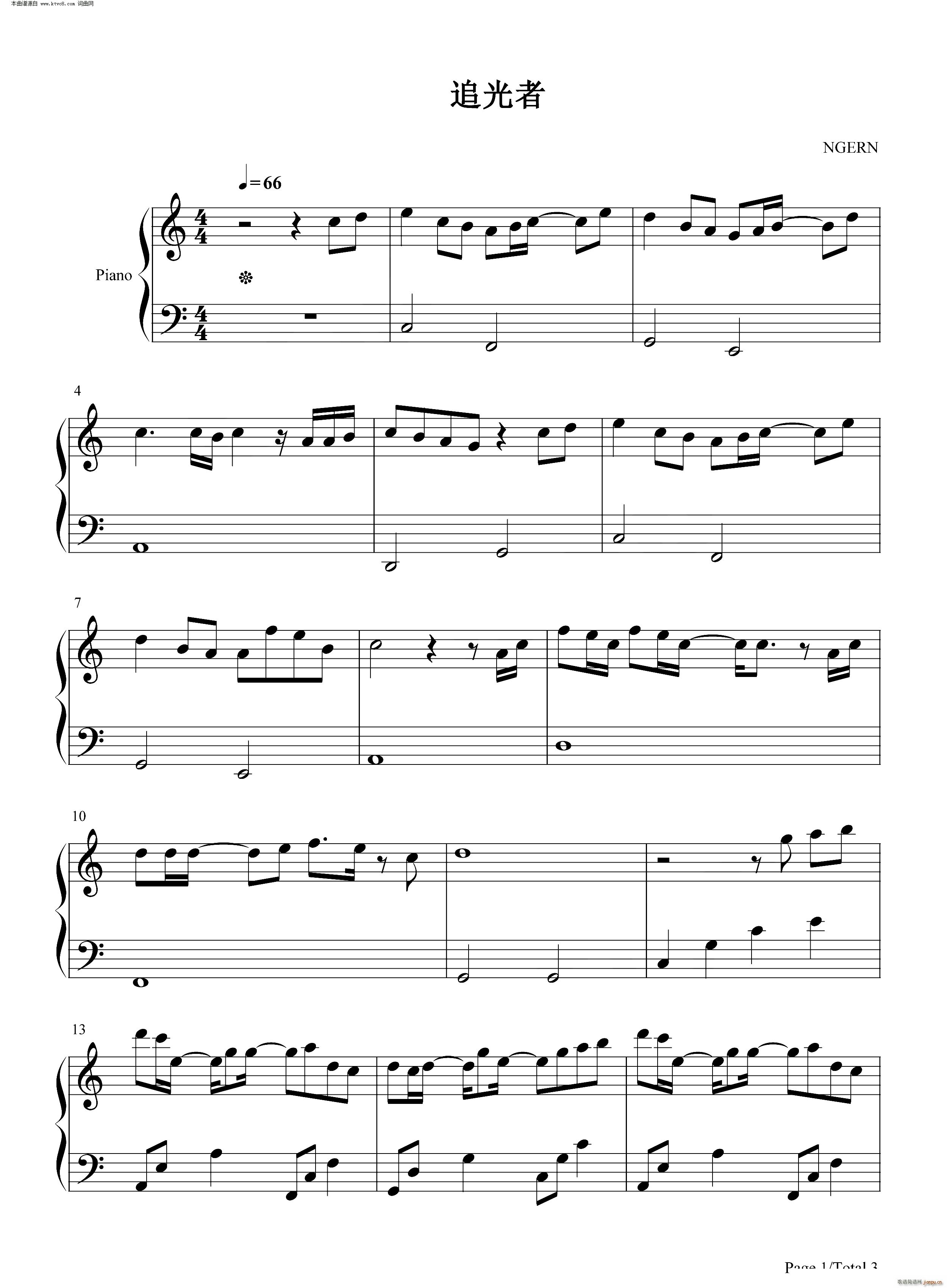 [钢琴谱]追光者(C调简单版) 岑宁儿