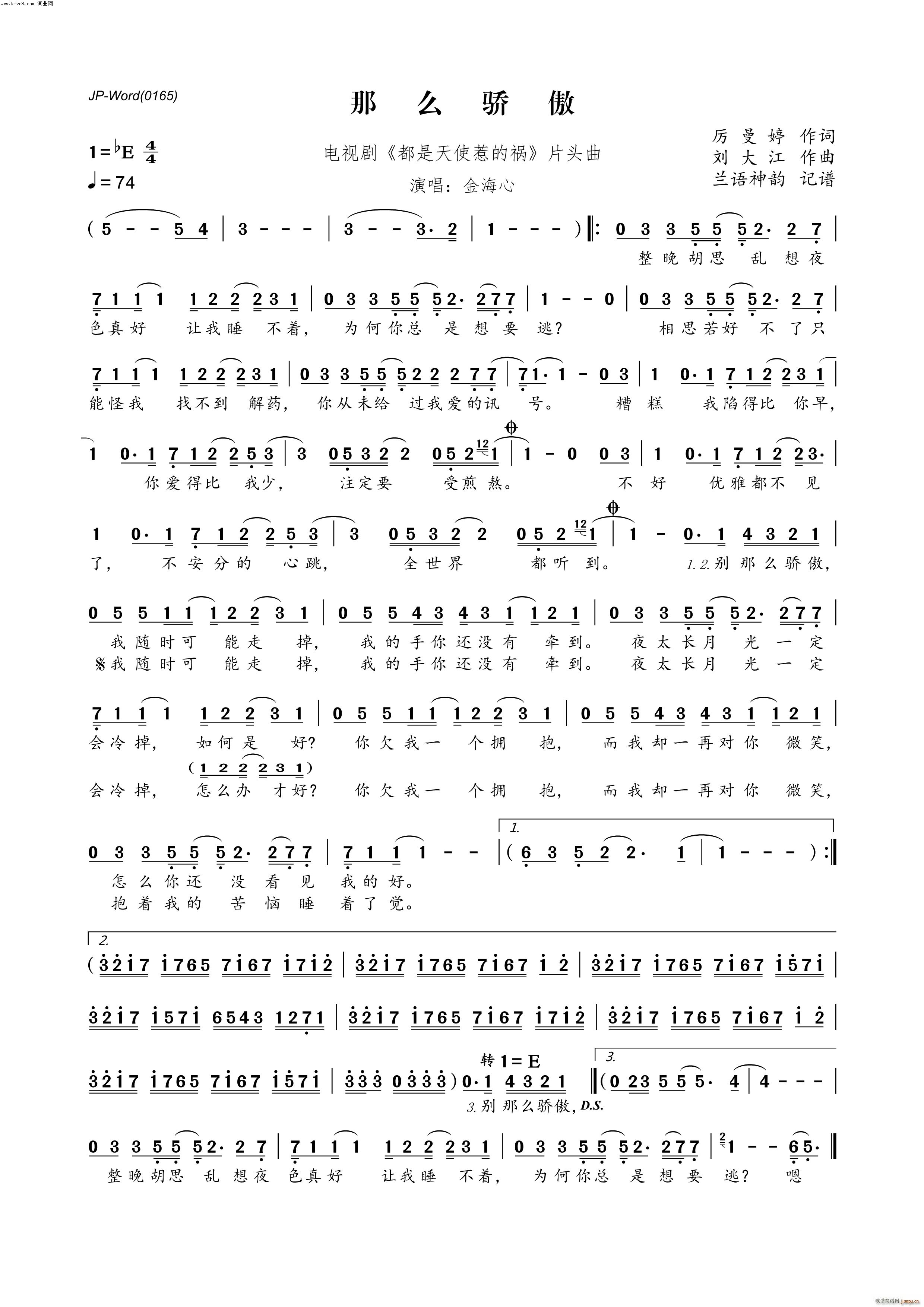 [十字及以上]那么骄傲(电视剧《都是天使惹的祸》片头曲) 金海心