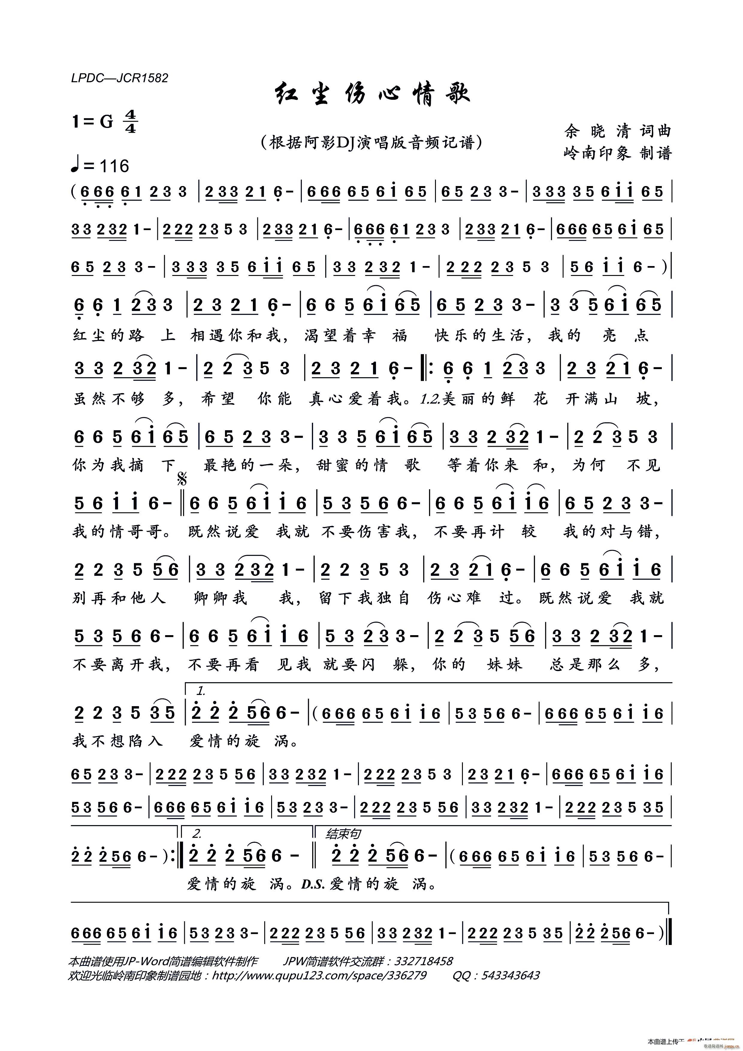 [五字歌谱]新红尘情歌 高安版 彩版新红尘情歌