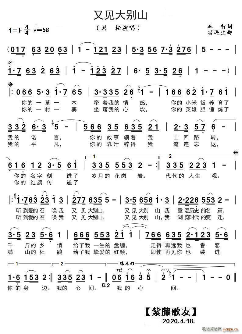 [五字歌谱]我的大别山 词詹德胜 曲许宝仁