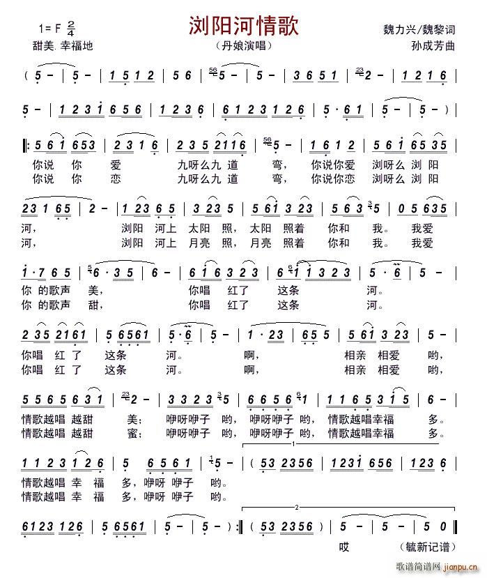 [三字歌谱]浏阳河[合唱曲谱] 未知