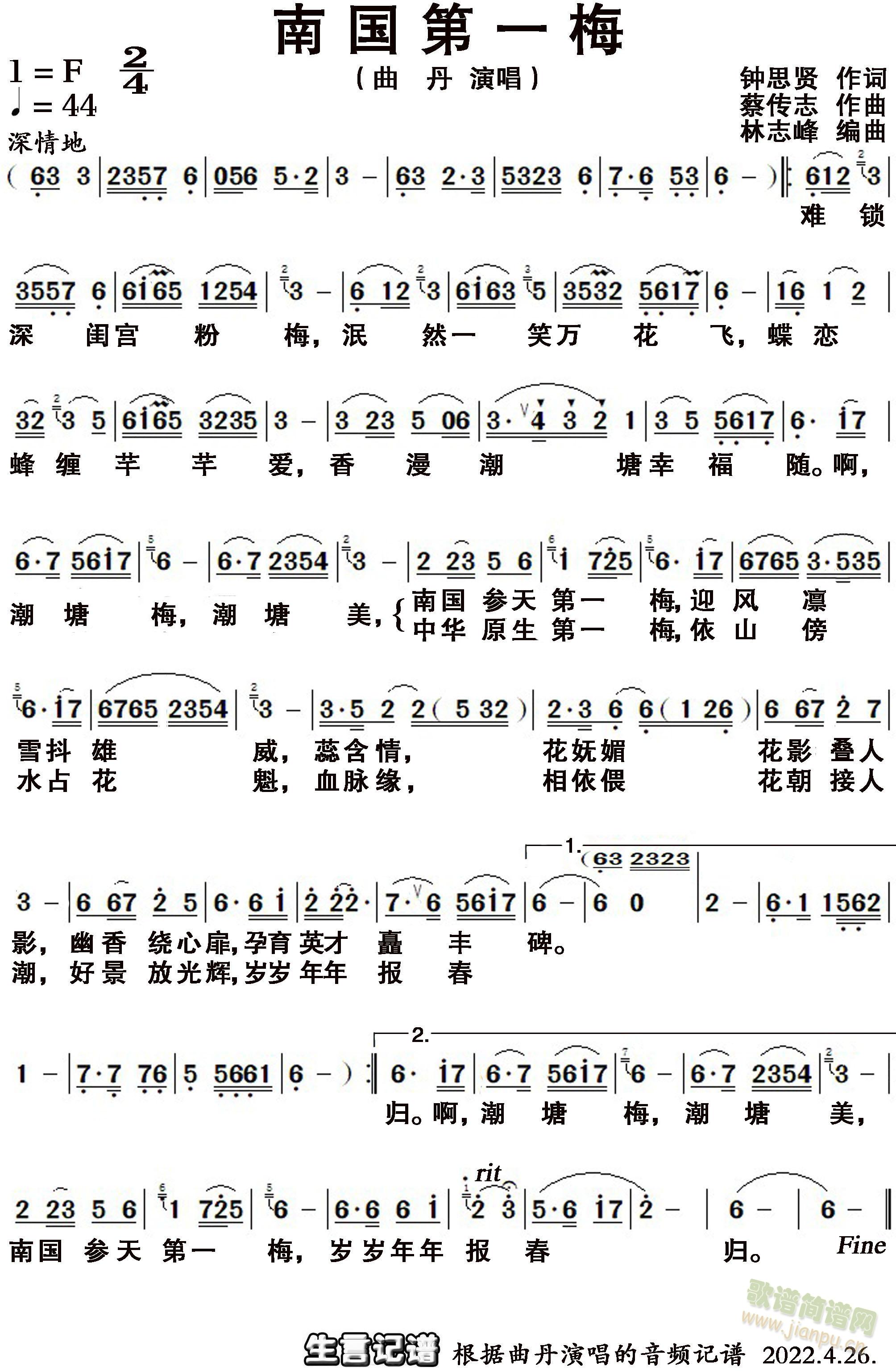 当前位置: 歌谱简谱网 > 五字歌谱 > 南国第一梅