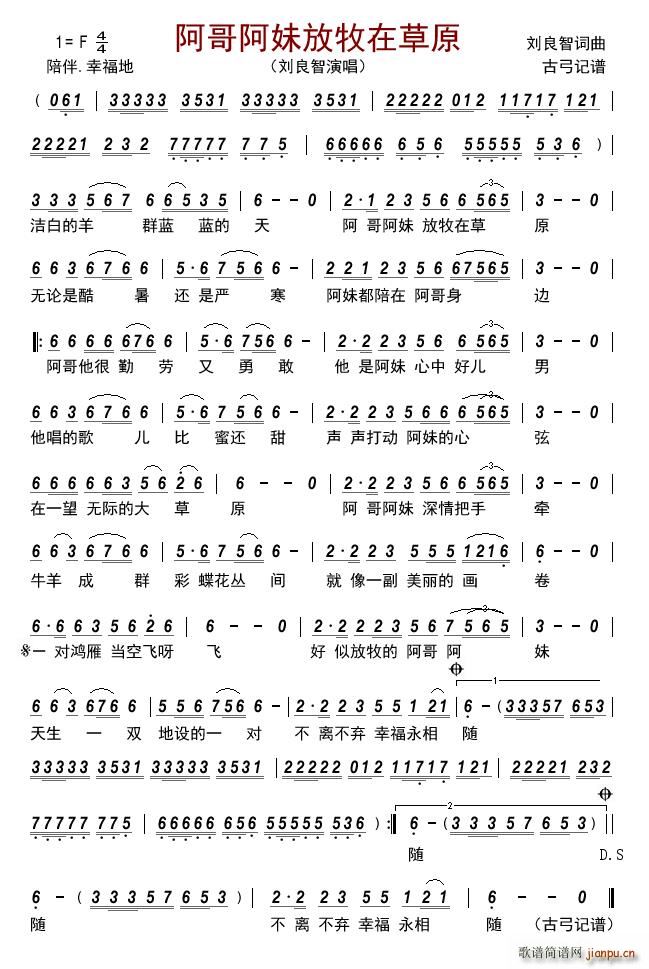 [九字歌谱]阿哥阿妹放牧在草原 刘良智