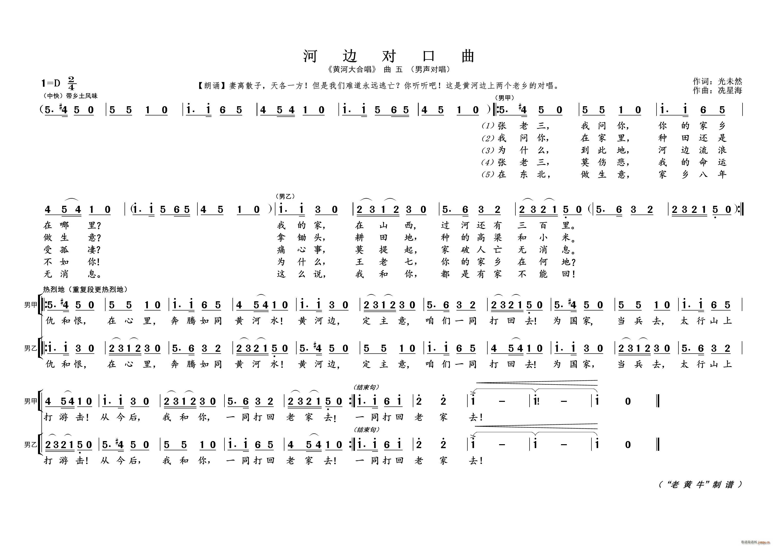 [六字歌谱]黄河边对口曲