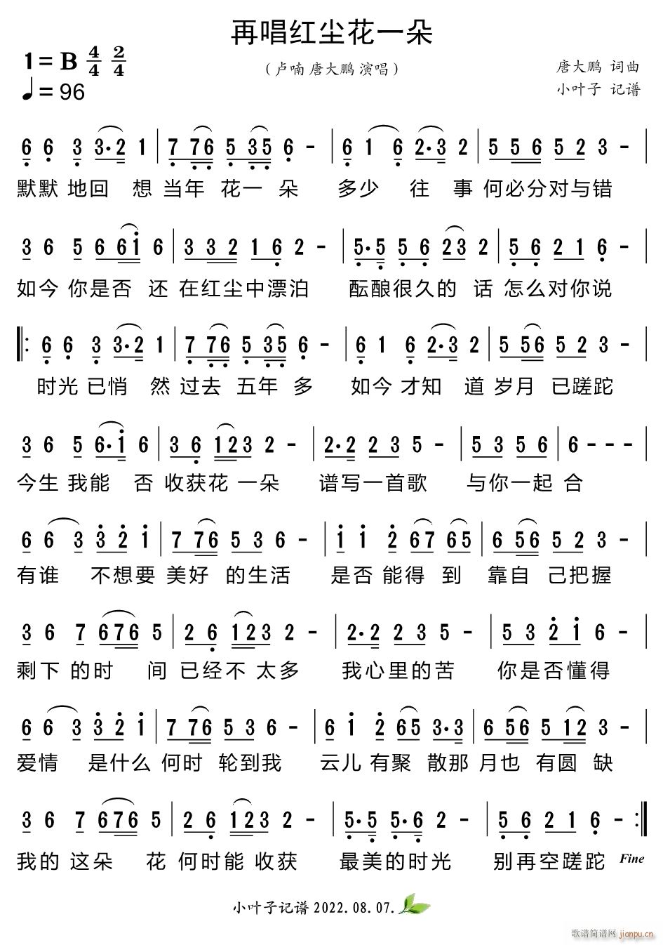 [七字歌谱]再唱红尘花一朵 卢喃 唐大鹏