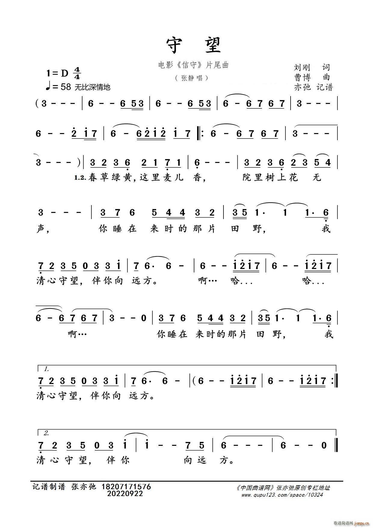 守望(亦弛记谱)(电影《信守》片尾曲)