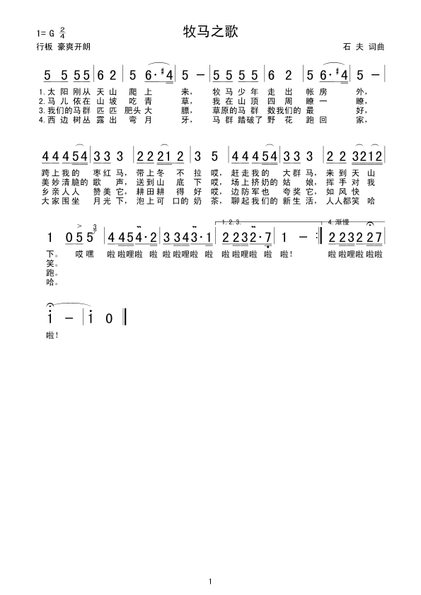 [四字歌谱]牧马之歌(新疆民歌) 未知