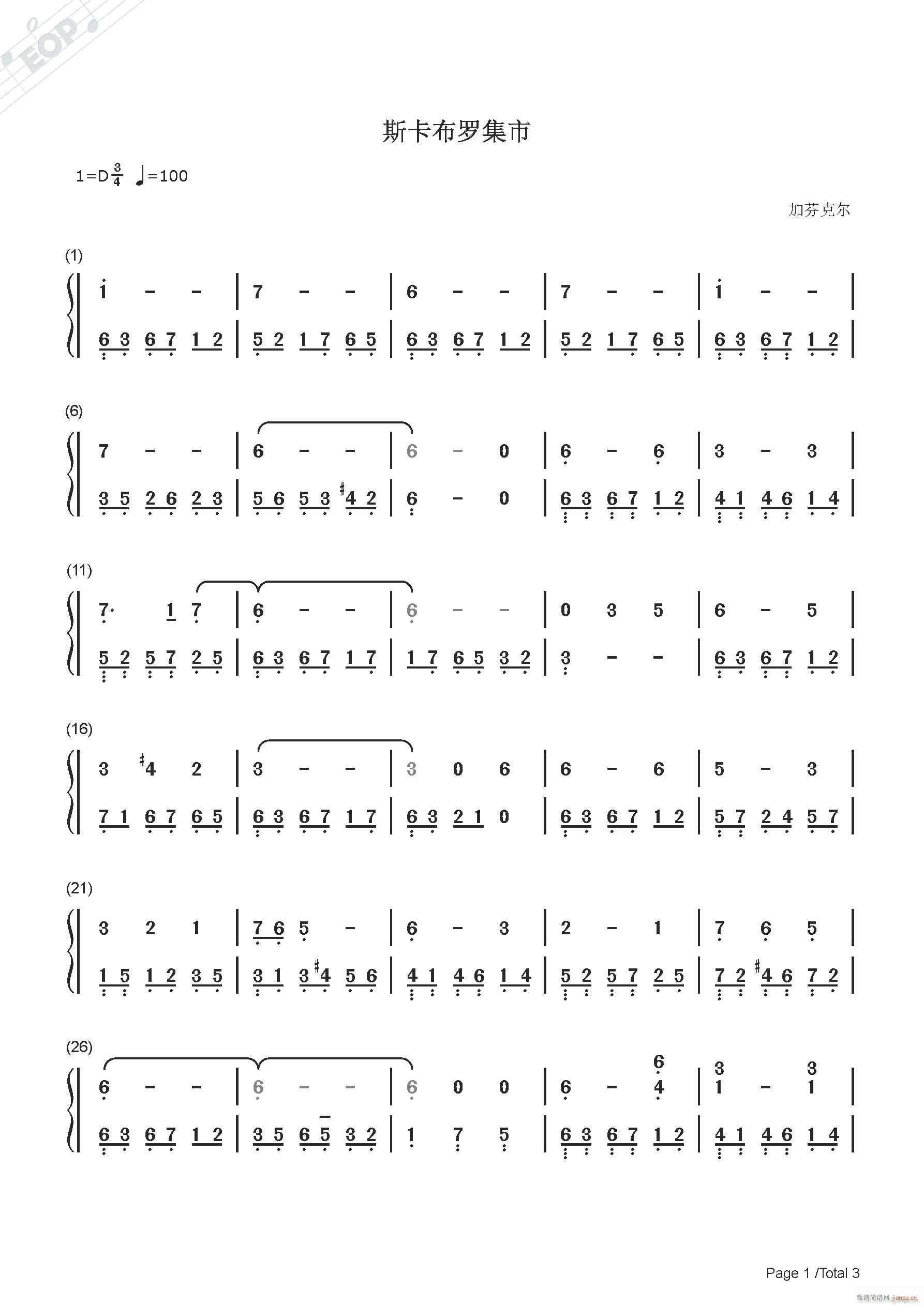 [小提琴谱]斯卡布罗集市 (斯卡布罗集市 ) 莎拉布莱曼