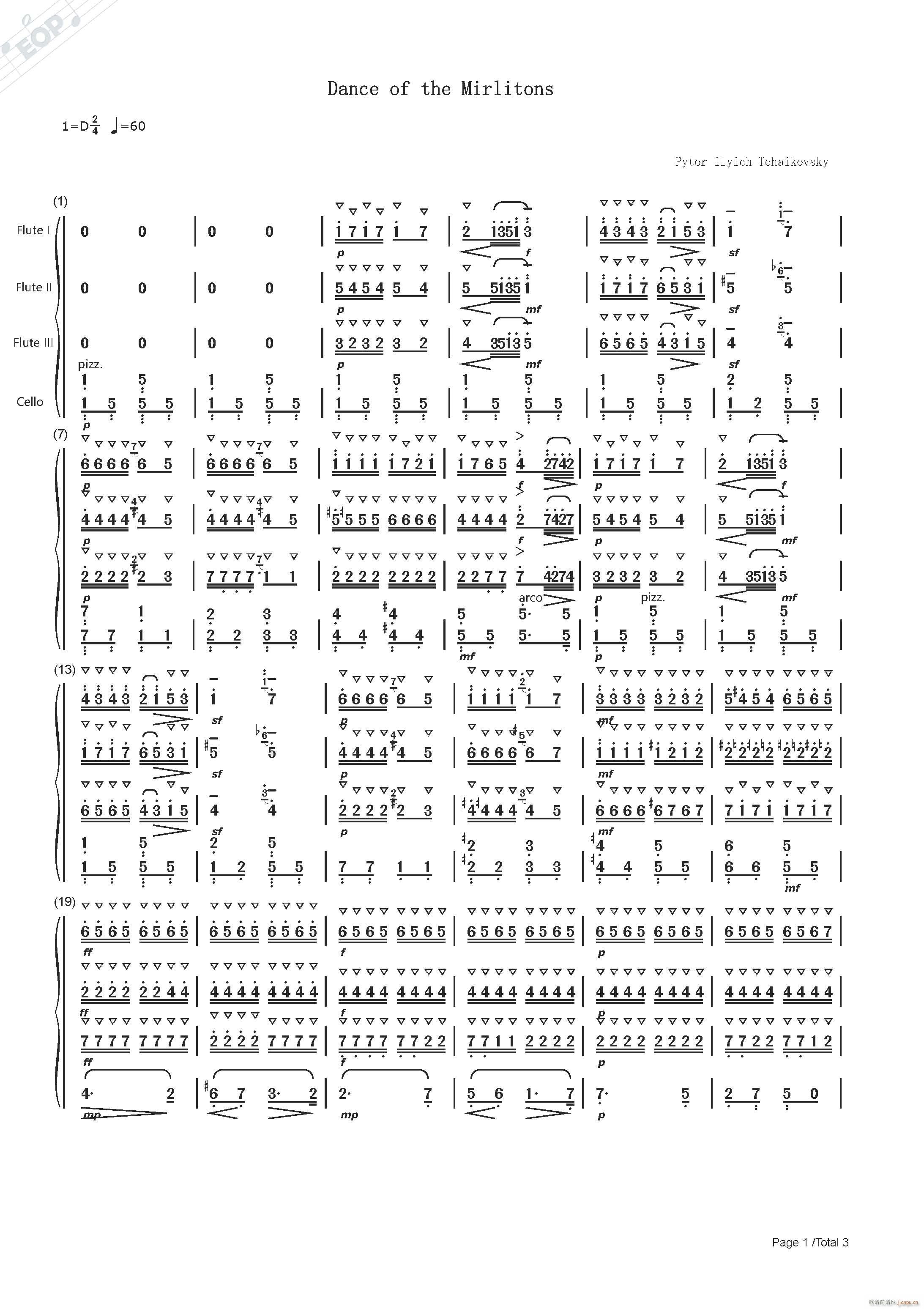 [笛箫谱]柴可夫斯基 胡桃夹子芦笛舞(混合四重奏)