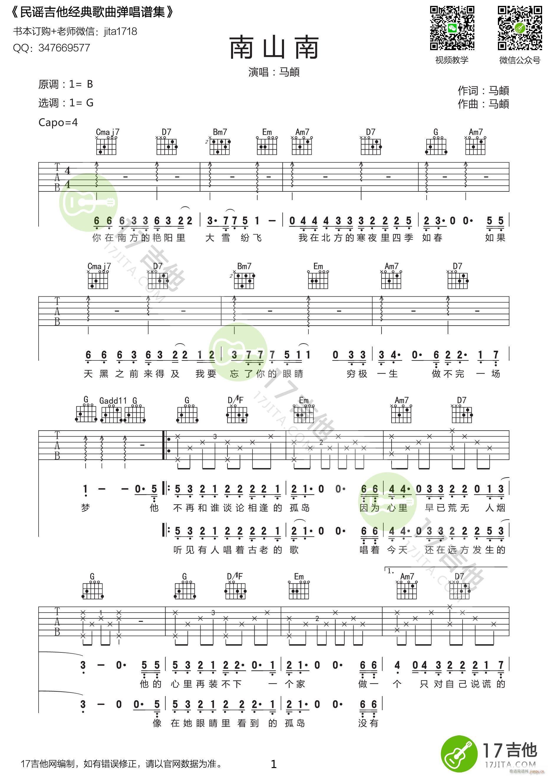 [吉他谱]南山南 ( G调原版编配) 马頔