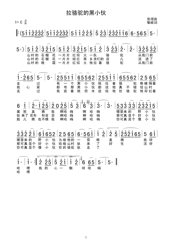 [三字歌谱]拉骆驼