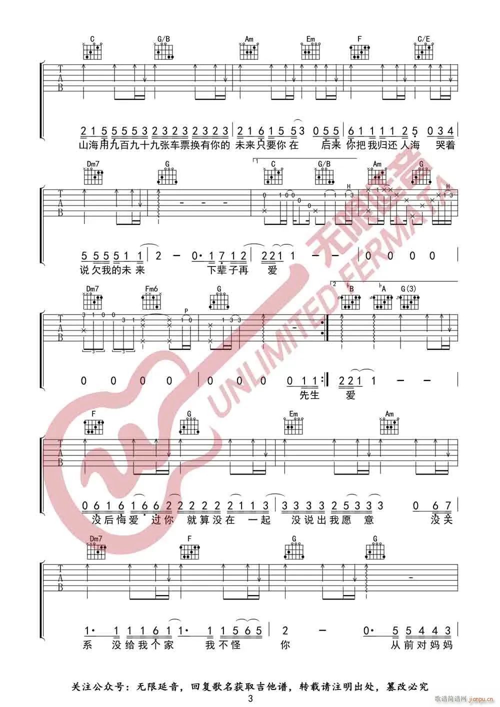[吉他谱]妈妈的话 ( C调原版编配) Zyboy忠宇