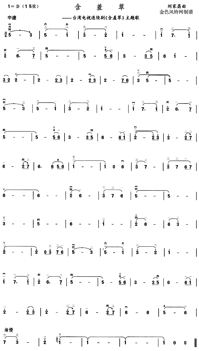 [古筝扬琴谱]含羞草 未知
