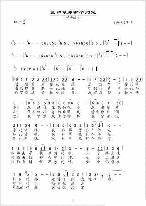 [八字歌谱]我和草原有个约定(简谱) 齐峰