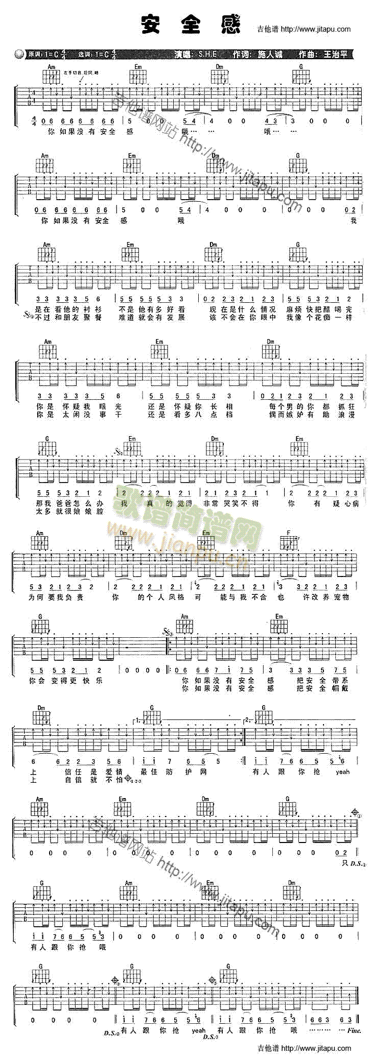 [吉他谱]安全感 S.H.E