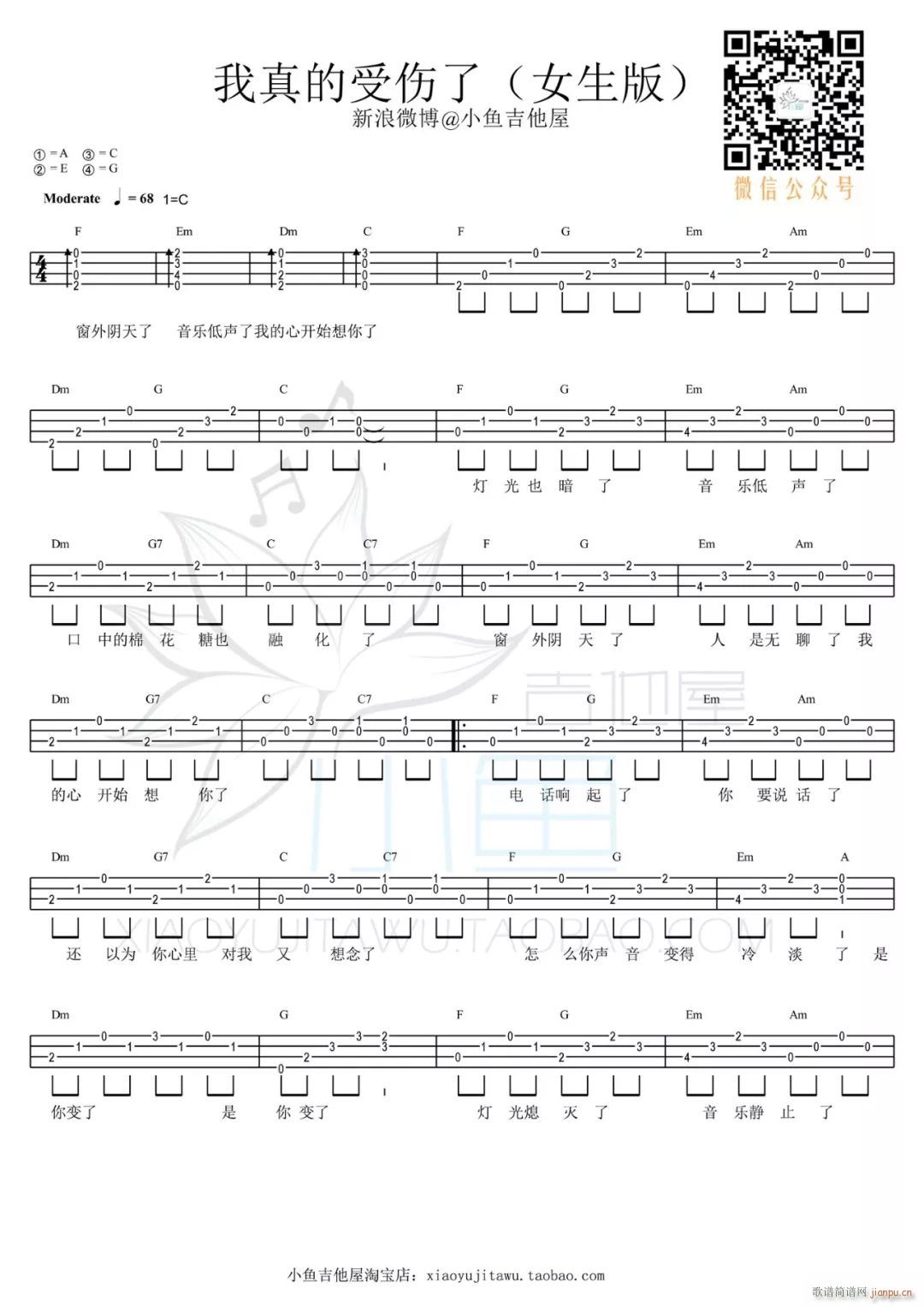 [十字及以上]我真的受伤了尤克里里谱( C调四 ) 张学友