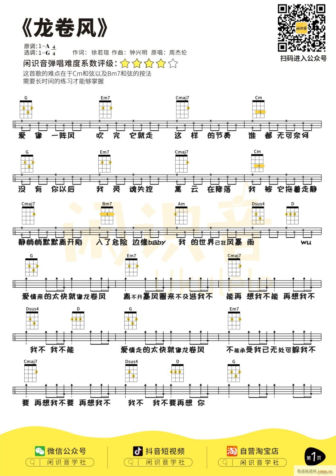 龙卷风尤克里里谱( G调尤克里里弹唱谱)