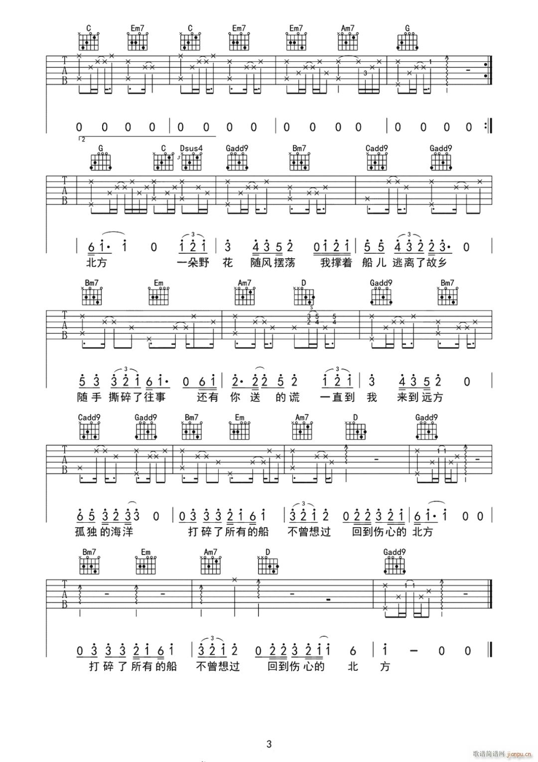[吉他谱]北方 ( G调指法原版编配) 倪健