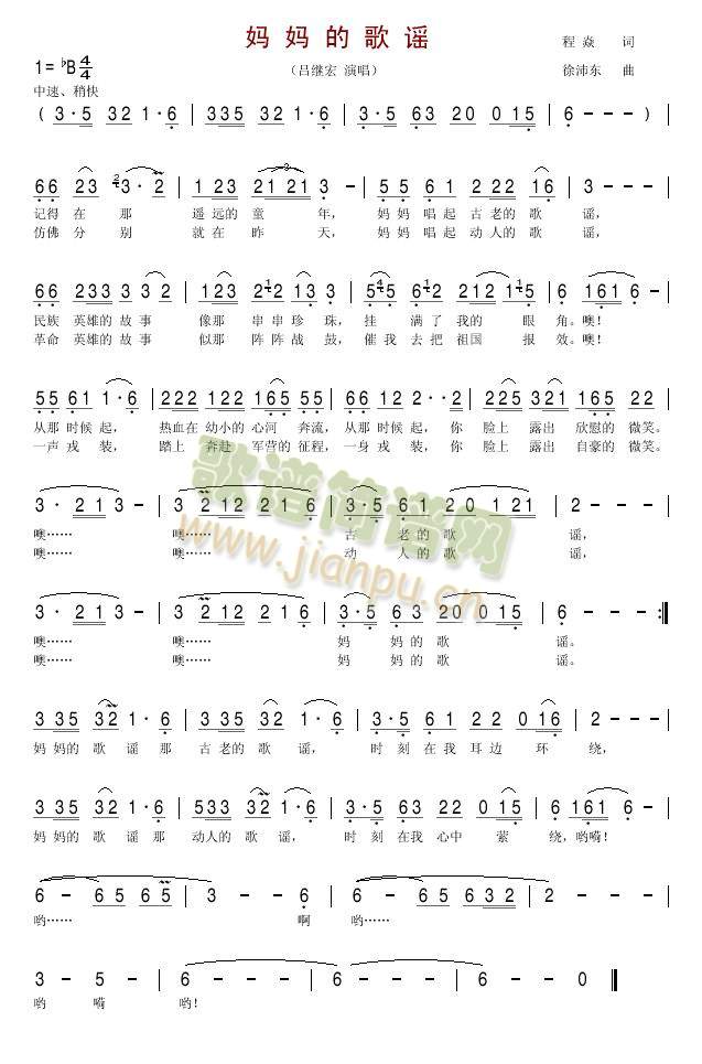[五字歌谱]妈妈的歌谣(修订版) 吕继宏