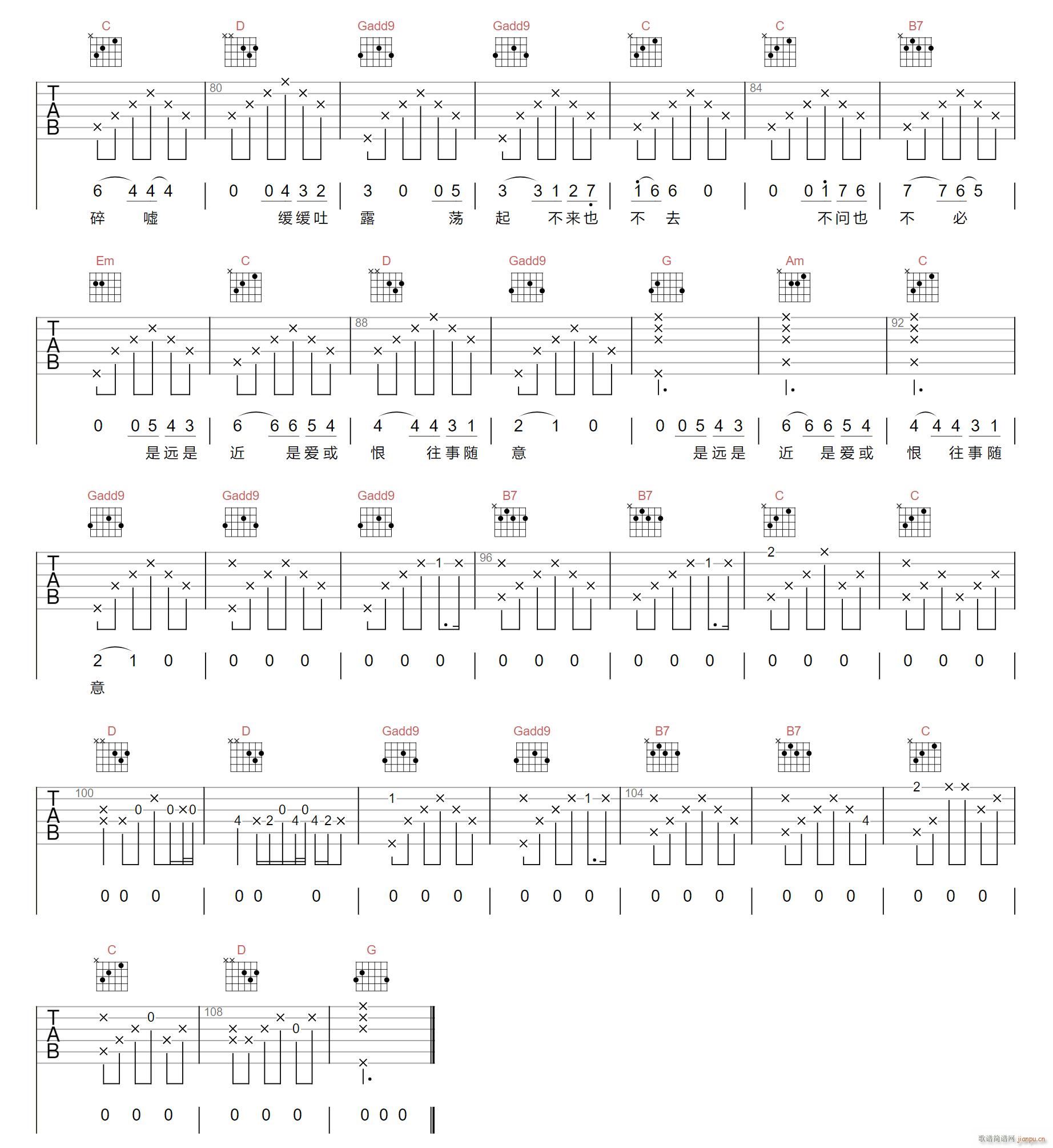 [吉他谱]不来也不去 ( G调指法) 房东的猫
