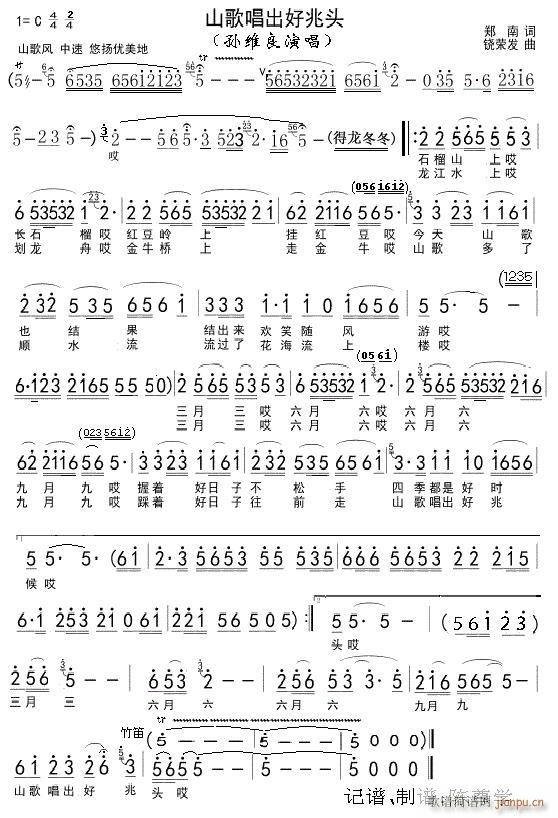 [七字歌谱]山歌唱出好兆头 牟玄甫