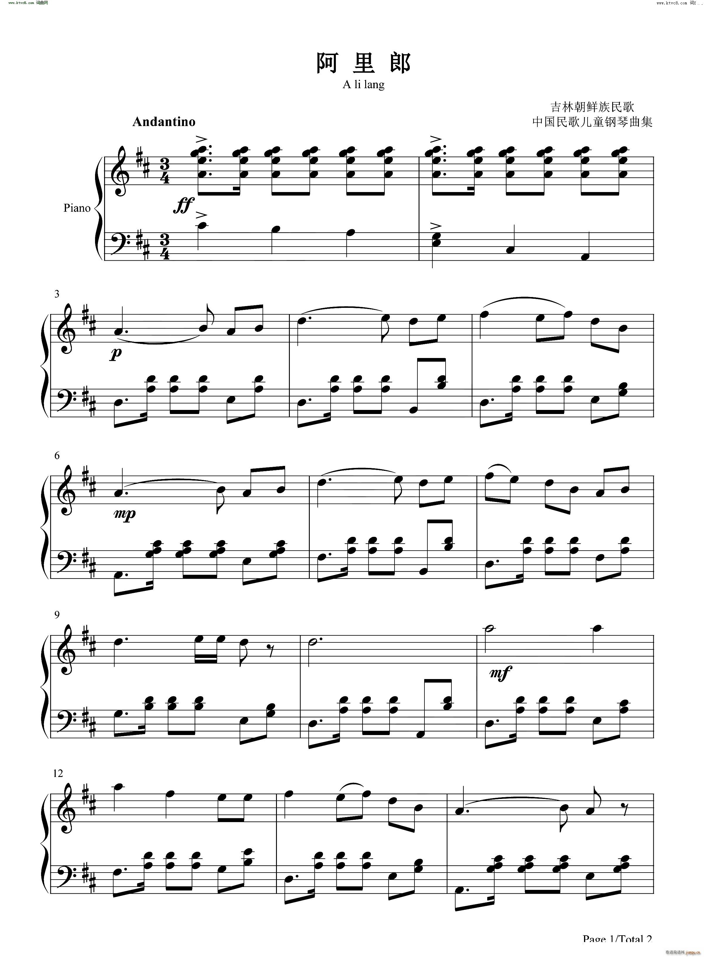 [钢琴谱]阿里郎A li lang Arirang