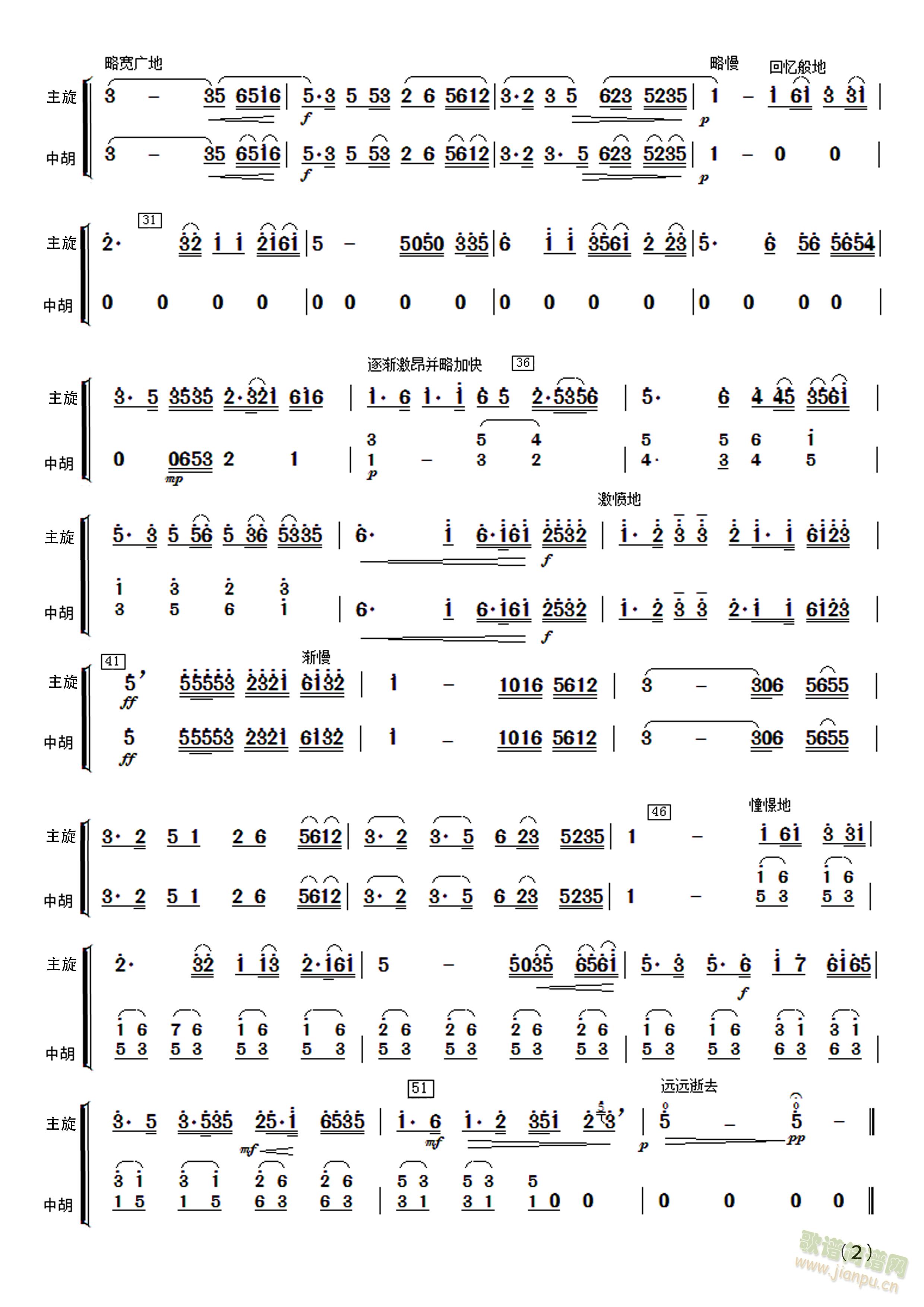 [古筝扬琴谱]民乐合奏《二泉映月》扬琴 中胡分谱 彭修文编曲