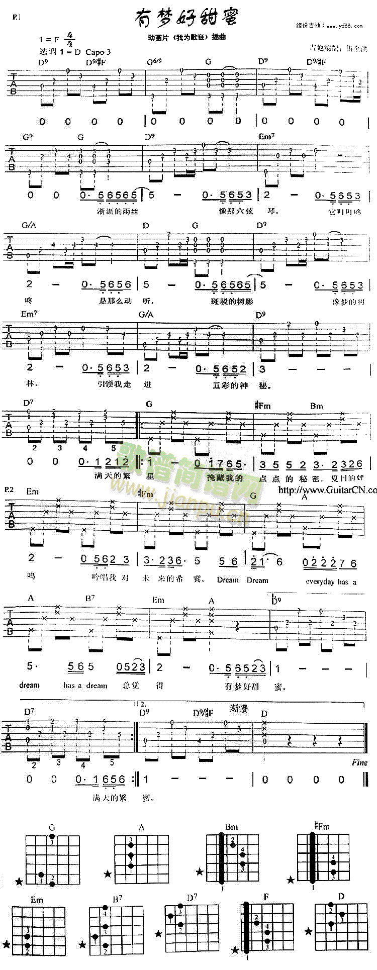 [吉他谱]有梦好甜蜜(《我为歌狂》插曲) 胡彦斌