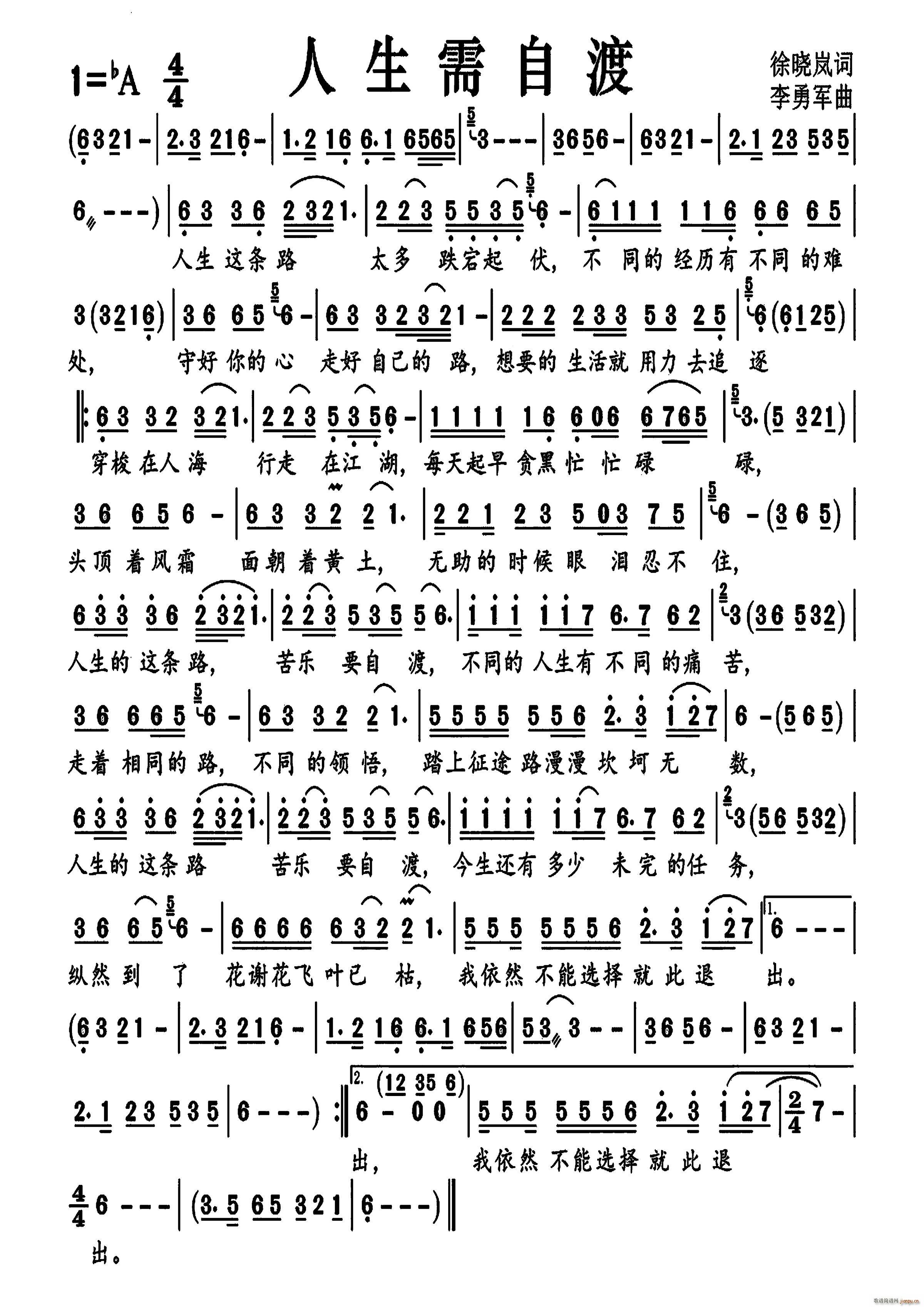 [九字歌谱]人生需自渡(伤感版) 米灵