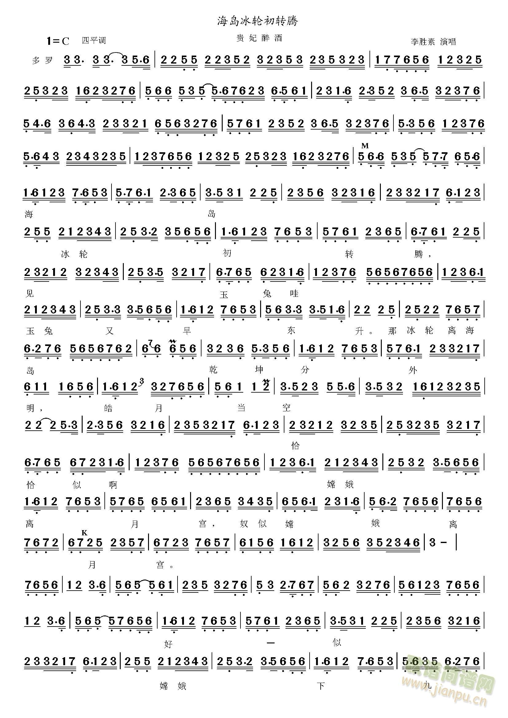 [八字歌谱]海岛冰轮初转腾《贵妃醉酒》1